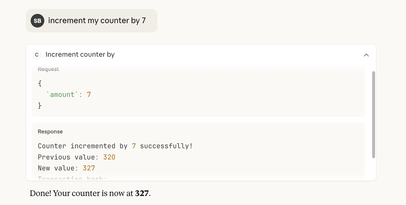 Once that’s all setup you can now ask Claude things like increment my counter by 7
